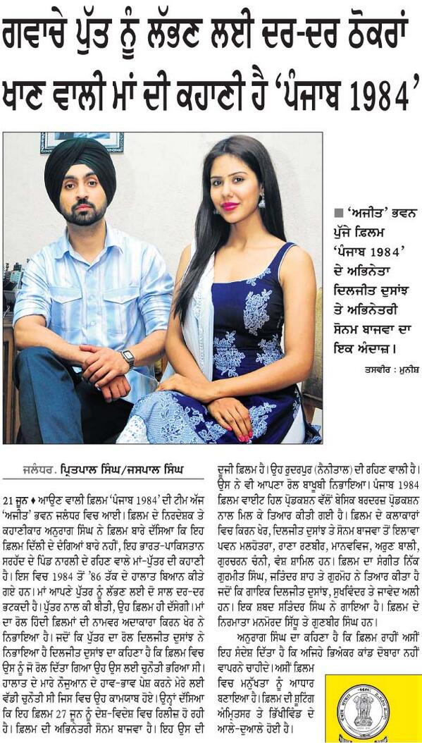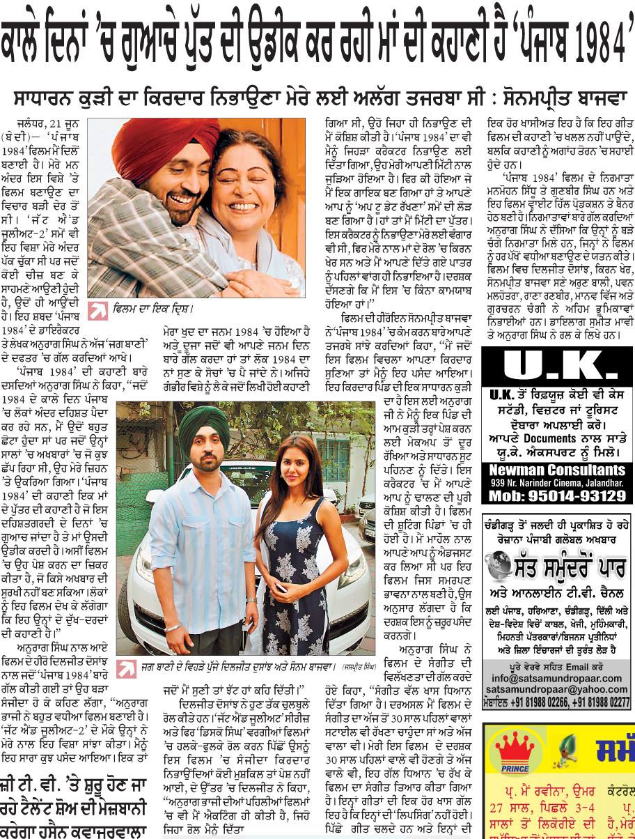 - Starring: Diljit Dosanjh (Shivjeet Singh), Kirron Kher, Sonam Bajwa, Pawan Malhotra, Rana Ranbir